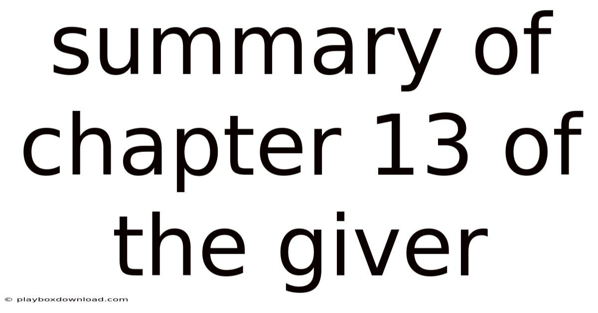 Summary of Chapter 13 of The Giver