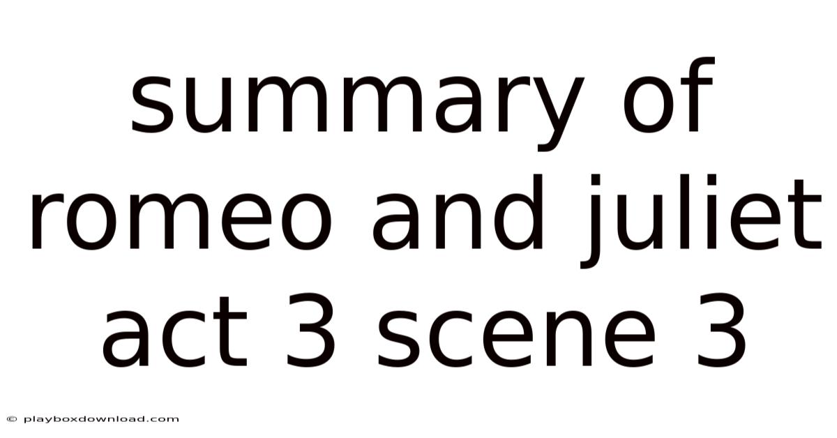 Summary of Romeo and Juliet – Act 3, Scene 3