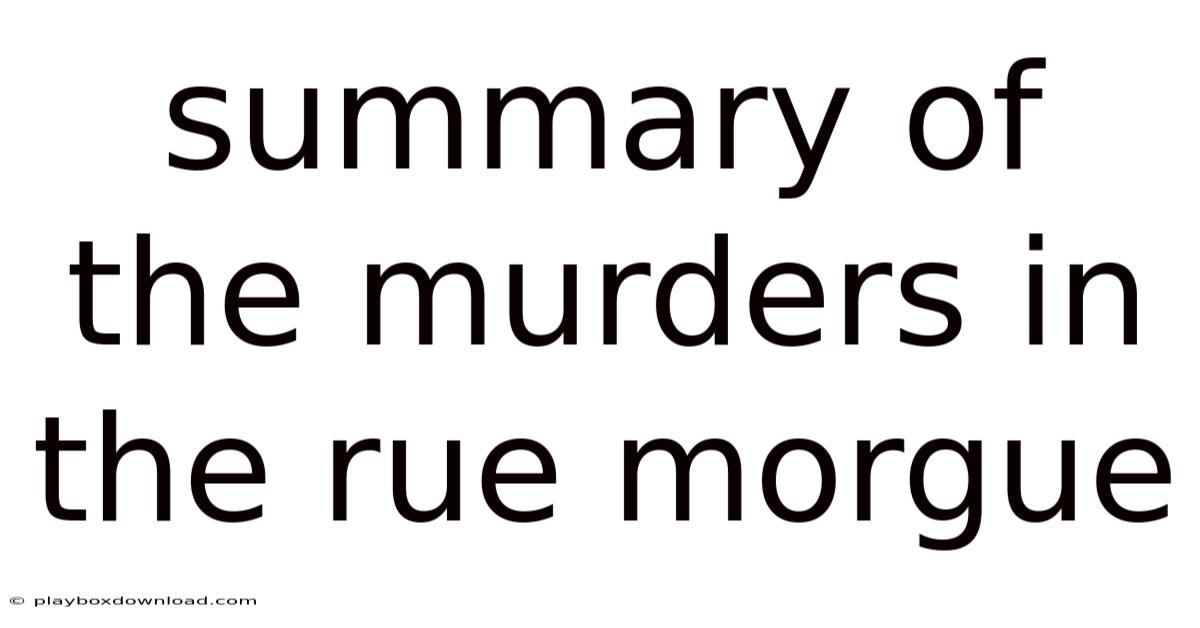 Summary of the Murders in the Rue Morgue is a seminal work by Edgar Allan Poe, often credited as the first detective story in literature. This article provides a comprehensive overview of the plot, themes, and significance of this impactful narrative That's the part that actually makes a difference..