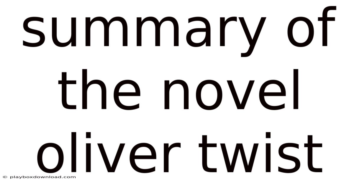 Summary Of The Novel Oliver Twist