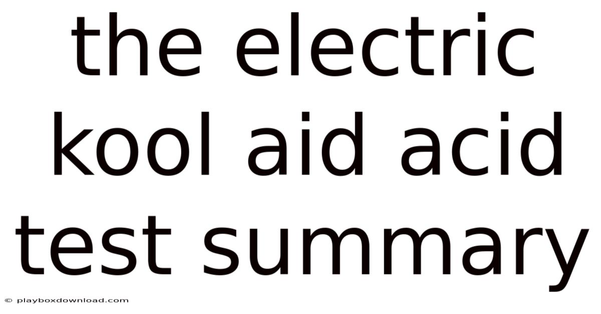 The electric kool aid acid test summary offers a concise yet vivid snapshot of one of the most controversial and culturally resonant experiments in modern American history. This article breaks down the origins, the procedural steps, the underlying science, and the lasting legacy of the Acid Test, providing readers with a clear, engaging overview that can be referenced for academic purposes or personal curiosity It's one of those things that adds up. Which is the point..