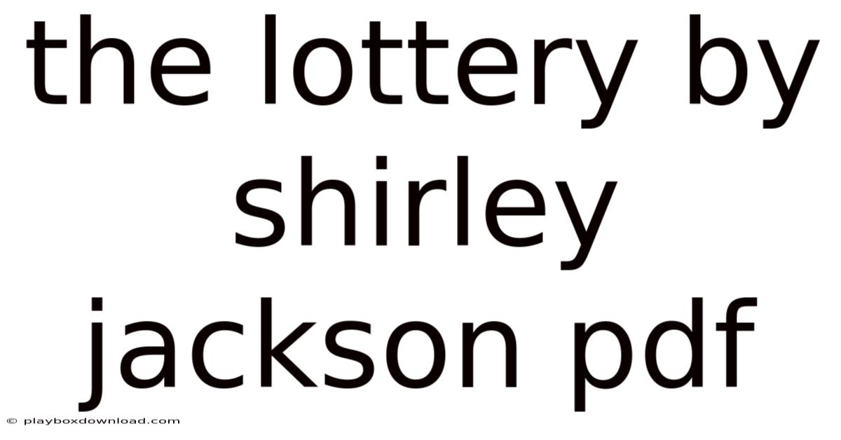 The Lottery By Shirley Jackson Pdf