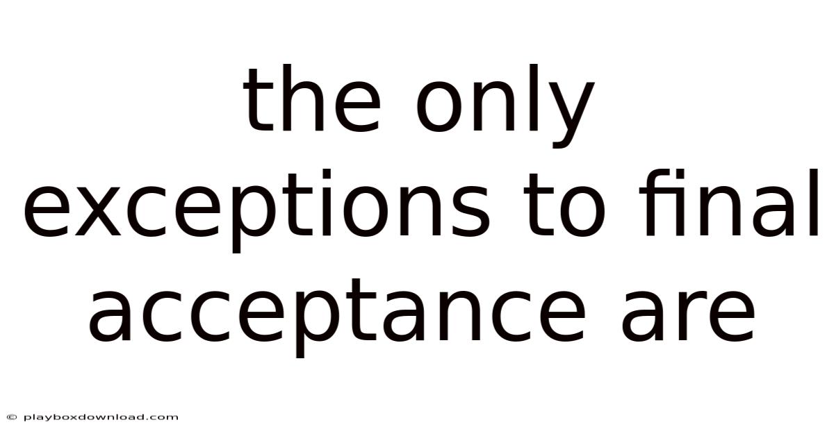 The concept of final acceptance is a cornerstone of contract law, signifying the point where a project is deemed complete and the contractor's obligations are fulfilled. Even so, understanding that the only exceptions to final acceptance are specific, legally defined circumstances is crucial for contractors, project owners, and legal professionals alike. While the general rule dictates that a completed project leads to final payment and the transfer of risk, there are distinct scenarios—ranging from latent defects to fraud—that can pierce the veil of final acceptance, allowing parties to seek recourse even after the paperwork is signed Small thing, real impact..