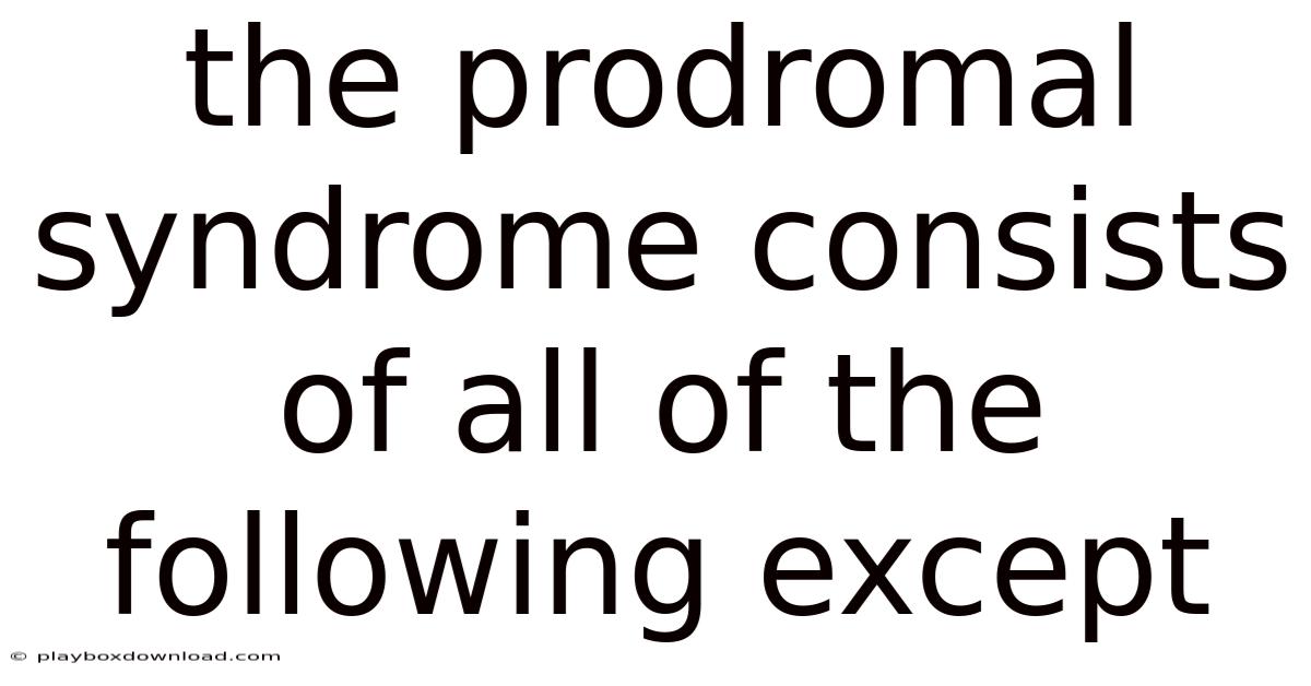 Understanding the early warning signs of disease is a cornerstone of preventive medicine and early intervention. The term prodromal syndrome refers to the collection of initial, often vague and nonspecific symptoms that precede the onset of a full-blown medical or psychiatric condition. Recognizing this pre-illness phase can be crucial for timely treatment and improved outcomes. On the flip side, a precise definition requires not only knowing what is included but, critically, what is excluded. Practically speaking, the statement "the prodromal syndrome consists of all of the following except" challenges us to delineate the boundaries of this concept, separating true early manifestations from unrelated phenomena, full symptoms, or mere risk factors. This article will comprehensively define the prodromal phase, list its core components, and then explicitly detail what it does not consist of, providing clarity for students, clinicians, and anyone seeking to understand the nuanced timeline of disease development Surprisingly effective..
