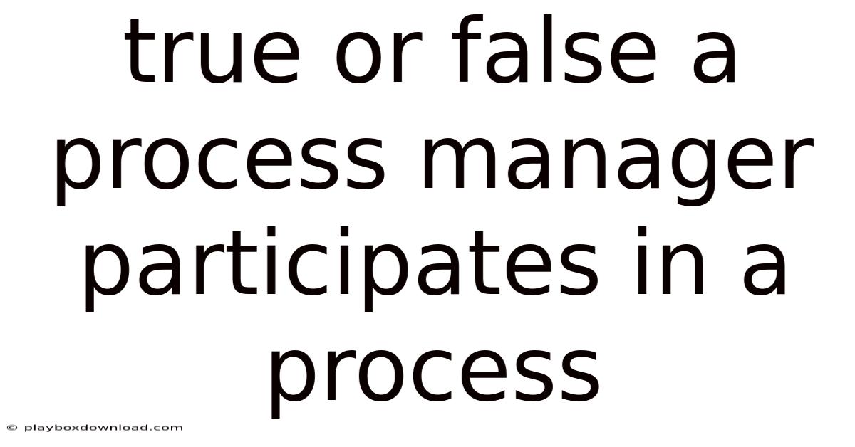 Answer: FALSE — A process manager does not participate in a process. Instead, it manages, controls, and coordinates processes from outside their execution context. This fundamental distinction is crucial for understanding how operating systems function and how process management works in computing environments Most people skip this — try not to. Less friction, more output..