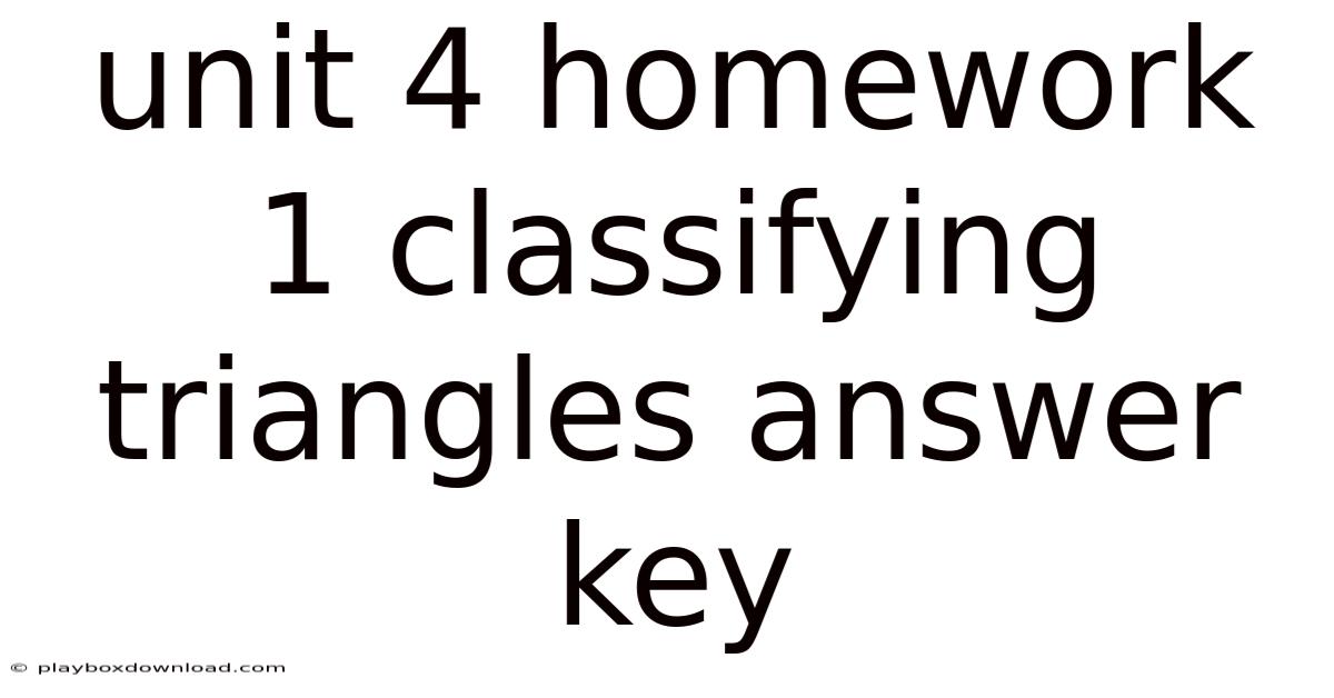 As you work through your Unit 4 Homework 1 on classifying triangles, use this answer key as a guide. Pay attention to the details of each classification and practice identifying triangles based on their angle and side properties. With consistent practice, you'll develop a strong foundation in triangle classification, setting you up for success in more advanced geometric concepts.