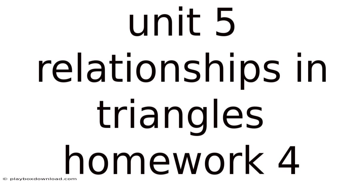 To excel in Unit 5 Relationships in Triangles Homework 4, students should practice drawing accurate diagrams and labeling all given information. Visual representation can make it easier to identify which properties or theorems to apply. Additionally, reviewing class notes and textbook examples can reinforce understanding of the relationships between different parts of a triangle.