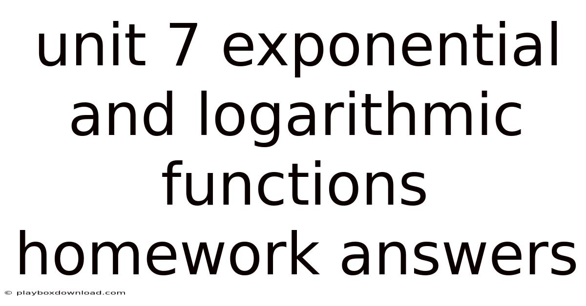 Unit 7’s exponential and logarithmic functions may initially appear intimidating, but the homework answers presented here demonstrate that each problem follows a logical sequence of properties and algebraic steps. By internalizing the core concepts, mastering the key formulas, and vigilantly checking domains, you can solve graphing tasks, exponential and logarithmic equations, and real‑world application problems with confidence. Keep this guide handy, practice regularly, and the patterns will become second nature—setting a solid foundation for advanced mathematics and scientific coursework.