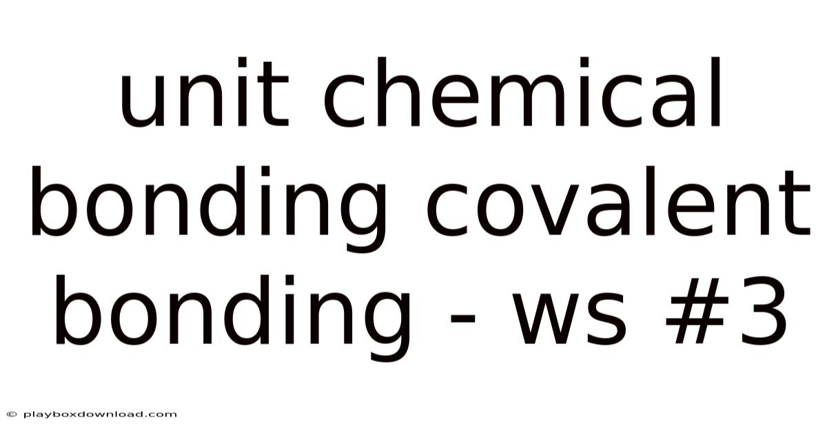 Unit Chemical Bonding Covalent Bonding - Ws #3
