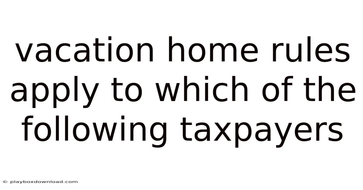 For individuals, vacation home rules primarily apply to those who own a property that is used primarily as a vacation or second home. This includes people who: