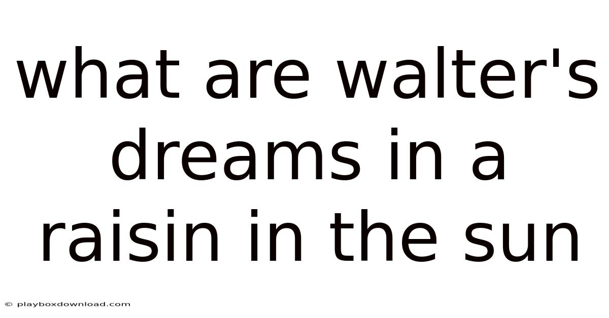 The title of the play is taken from Langston Hughes' poem "Harlem," which asks, "What happens to a dream deferred?" Walter is the living embodiment of this question. His dream is deferred by several factors: