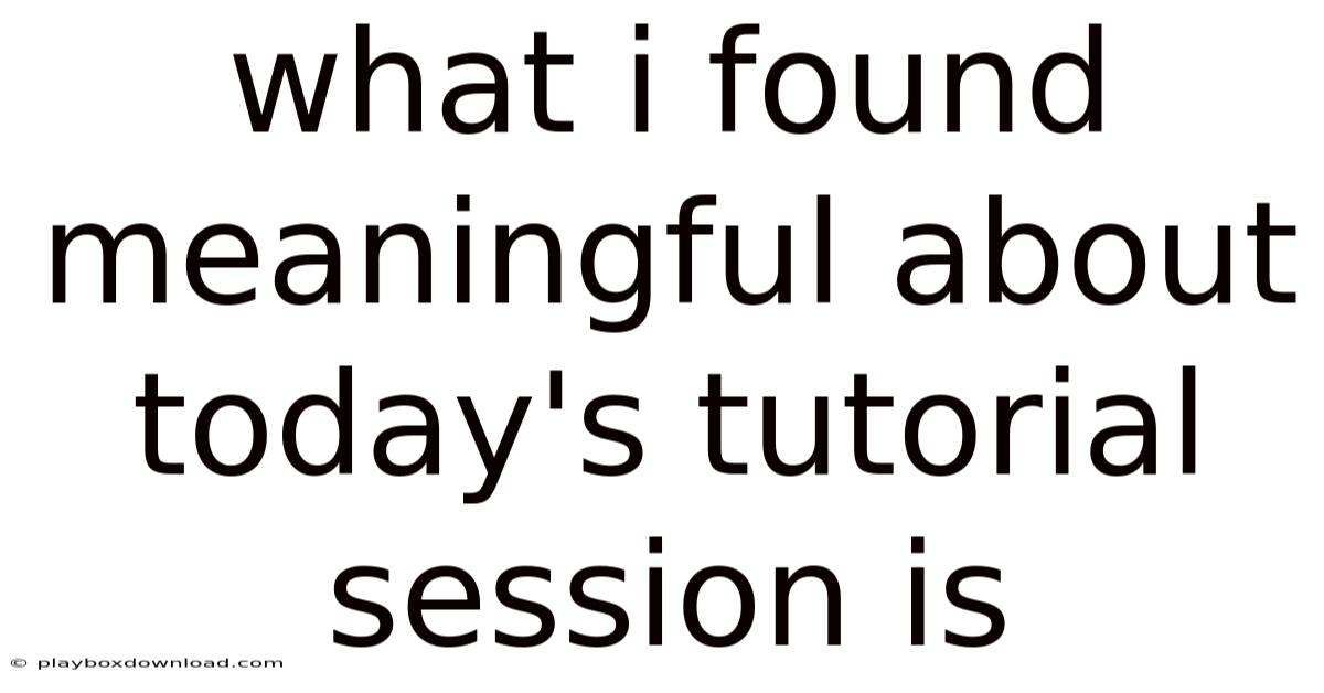 What I Found Meaningful About Today's Tutorial Session Is