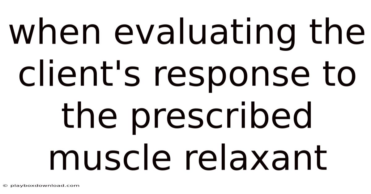When evaluating the client's responseto the prescribed muscle relaxant, healthcare providers must adopt a systematic and patient-centered approach to ensure both safety and efficacy. That said, their effectiveness varies significantly among individuals due to factors like underlying health conditions, dosage, and individual physiological responses. Think about it: a thorough evaluation of the client’s response involves monitoring both therapeutic outcomes and adverse effects, adjusting treatment plans as needed, and maintaining open communication with the patient. Muscle relaxants are commonly prescribed to alleviate muscle spasms, reduce pain, and improve mobility in conditions such as musculoskeletal injuries, chronic pain syndromes, or neurological disorders. This process is critical to optimizing pain relief while minimizing risks such as drowsiness, dizziness, or dependency.