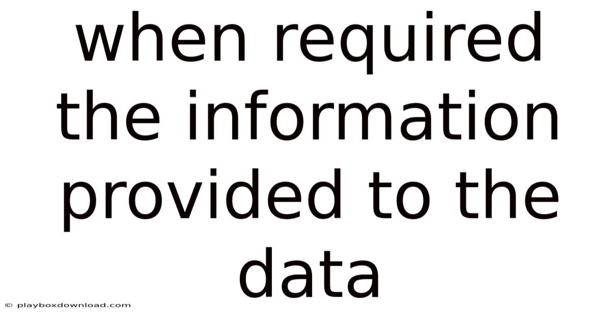 In today’s data‑driven world, the phrase “when required the information provided to the data” often surfaces in project plans, compliance checks, and analytics pipelines. It means that whenever data is requested—whether by a report, a machine learning model, or a regulatory audit—there must be a clear, timely, and accurate flow of information into the data repository. Understanding how to orchestrate this flow is essential for data engineers, analysts, and business stakeholders alike. This article explores the practical steps, technical considerations, and best practices that ensure the right information reaches the right data at the right time.