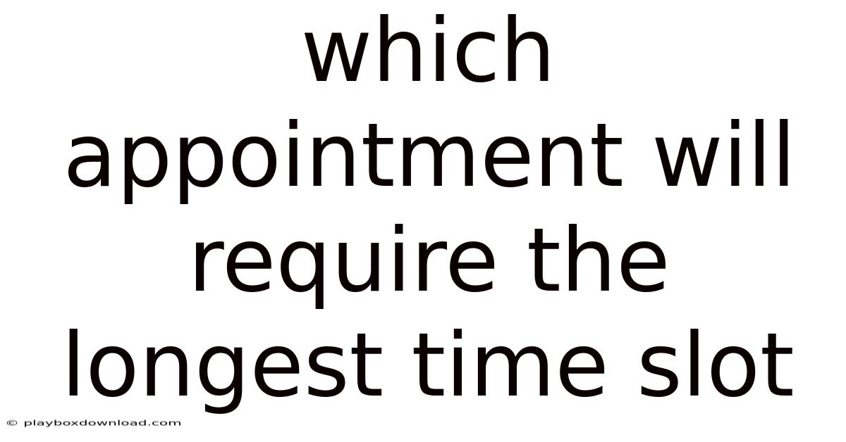 Whichappointment will require the longest time slot? This question often arises when individuals or professionals are planning their calendars, whether for medical consultations, job interviews, legal consultations, or academic advising. Understanding the typical duration of various appointment types helps you allocate sufficient time, avoid rushed interactions, and confirm that each meeting achieves its intended purpose. In this complete walkthrough, we will explore the factors that influence appointment length, compare common appointment categories, and provide practical tips for selecting the most appropriate time slot for your specific needs Simple, but easy to overlook..
