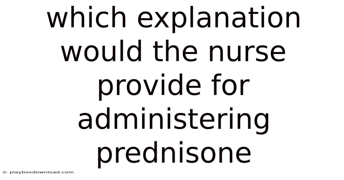 Prednisone is a synthetic corticosteroid medication frequently prescribed to manage a wide array of inflammatory and autoimmune conditions. When a nurse prepares to administer this drug, they carry a significant responsibility to ensure the patient understands not only what the medication is but also why it is necessary and how it affects the body. Worth adding: the explanation a nurse provides is a critical component of patient education, transforming a simple medication order into a collaborative step toward healing. This comprehensive discussion will explore the medical rationale, therapeutic goals, practical administration guidelines, potential side effects, and the importance of adherence that a nurse would detail to a patient.