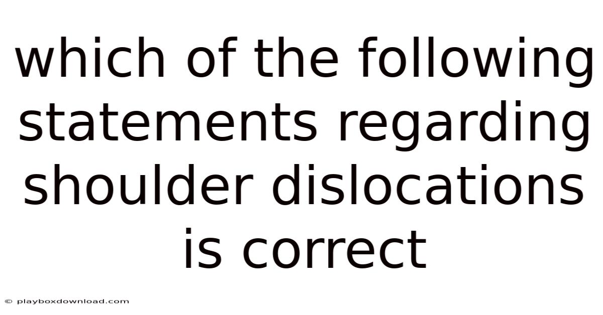 At the end of the day, determining which statements about shoulder dislocations are correct requires a thorough understanding of the condition and its various types. That said, by recognizing the differences between anterior and posterior dislocations, appreciating the importance of early intervention, and valuing professional guidance, individuals can work through this process with greater assurance. Think about it: remember, knowledge is power, and being well-informed empowers you to take the right steps toward recovery. Whether you are a student, a healthcare professional, or someone seeking clarity on this topic, this article provides valuable insights that matter.