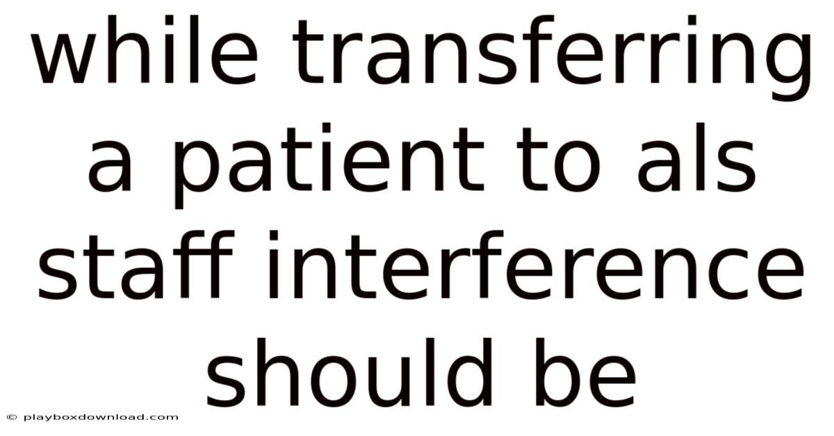 Minimizing Interference During Patient Transfers to ALS Staff: A Critical Guide