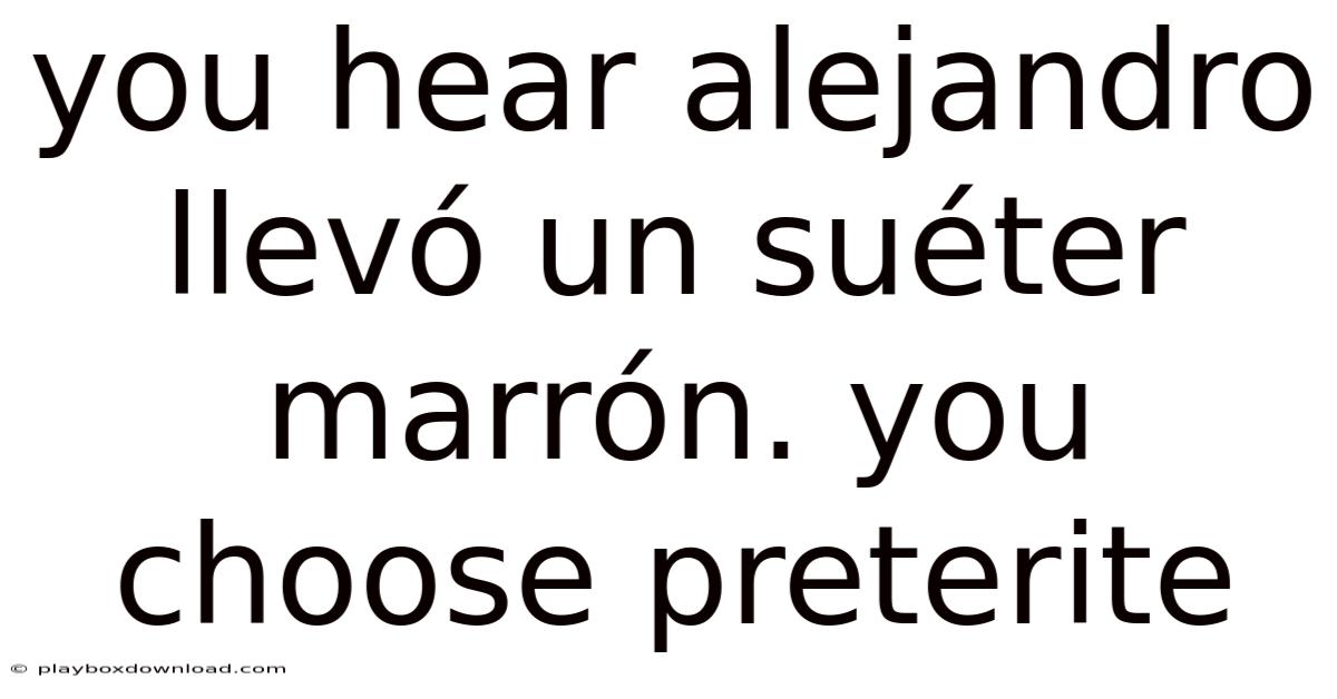 When you encounter the sentence “you hear Alejandro llevó un suéter marrón,” the immediate question many learners ask is: which verb form should I use? In Spanish, the answer lies in understanding the preterite tense, its function, and the grammatical cues that signal its appropriate use. This article walks you through the decision‑making process, explains the underlying grammar, and provides practical examples so you can confidently select the preterite when needed It's one of those things that adds up..